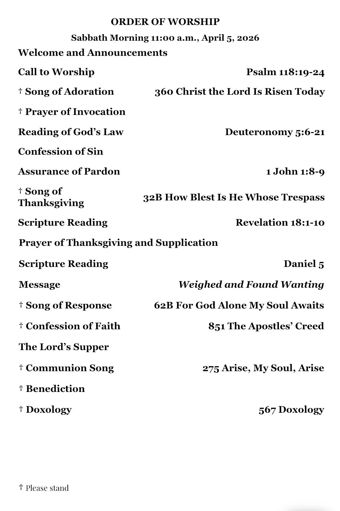Join us for morning and evening worship each Lord’s Day at 11:00 a.m. and 3:00 p.m.